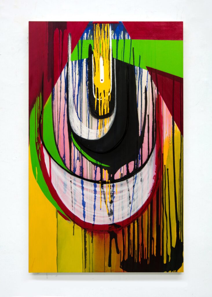 Oil, acrylic, spray paint and gesso on canvas